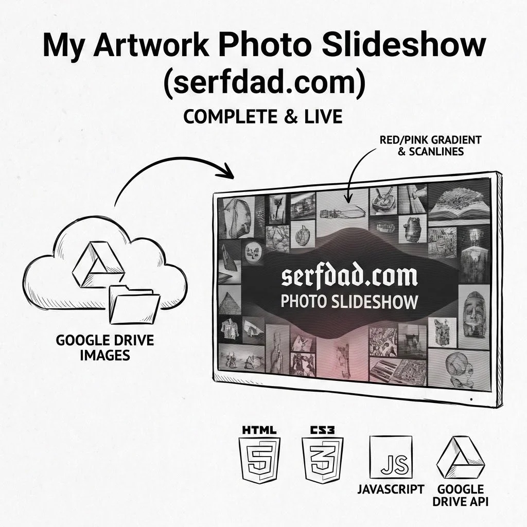 - Automatically updates when new images added to Drive folder