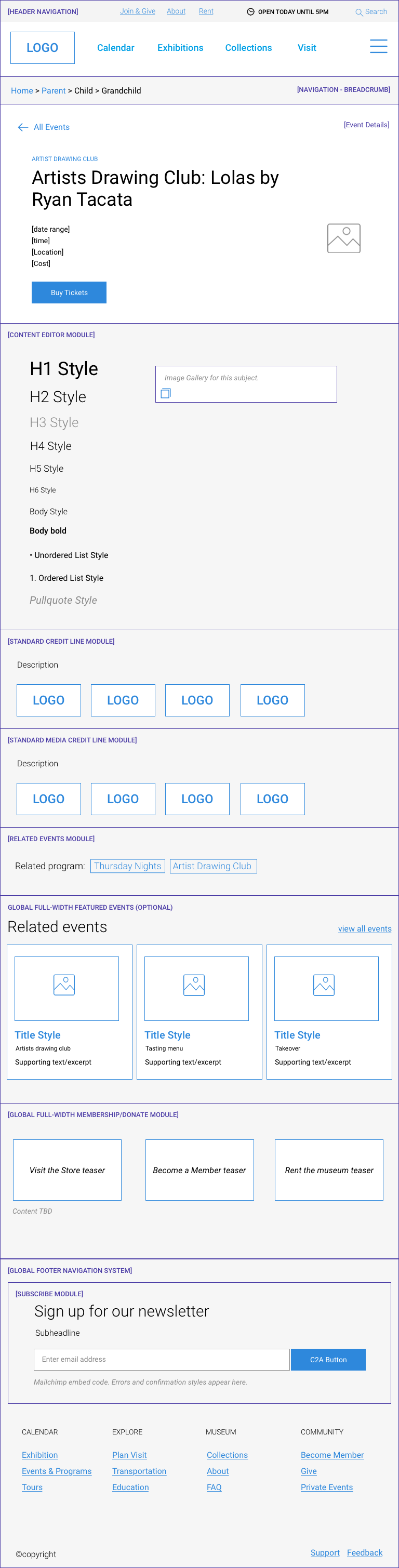 This being the first digital design system created for the museum, great emphasis was placed on accessibility and flexibility in every UI component. An inspiring design challenge throughout was finding innovative ways to serve the art experience online while maintaining sustainable CMS flexibility and thresholds.
