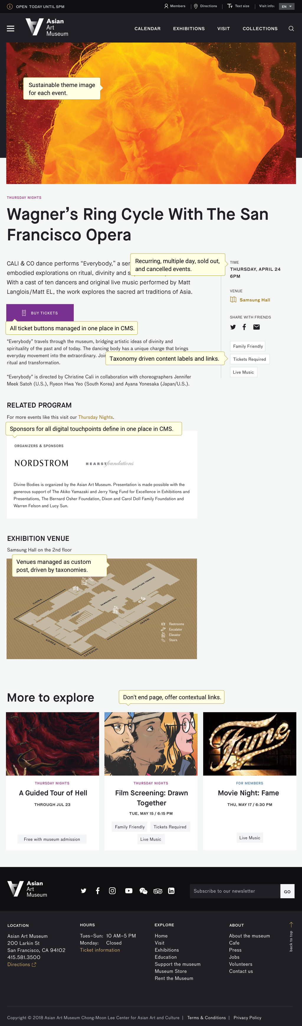 Asian Art Museum approached LION with a vision for digital transformation. Their current digital ecosystem and organizational data architecture was crowded, disorganized, and not adaptable to the evolving needs of museum guests and staff. This case study outlines my collaborative approach to redesigning the museum's CMS solution and website channel, 1 of 4 long term projects including in-gallery iOS app, digital signage in the museum and more.